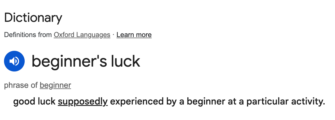 You're probably familiar with the term "Beginner's Luck" at this point. In case you're not, here's the official definition...